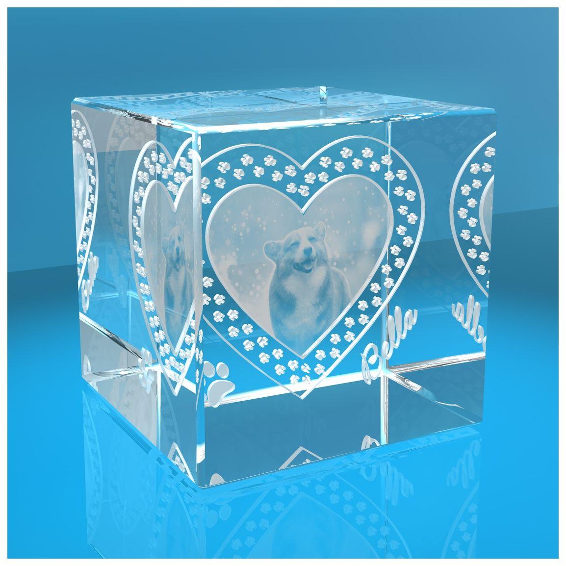 Produktinformationen "2D Glasfoto Kristall Würfel I Pfotenherz mit Deinem Wunschfoto"