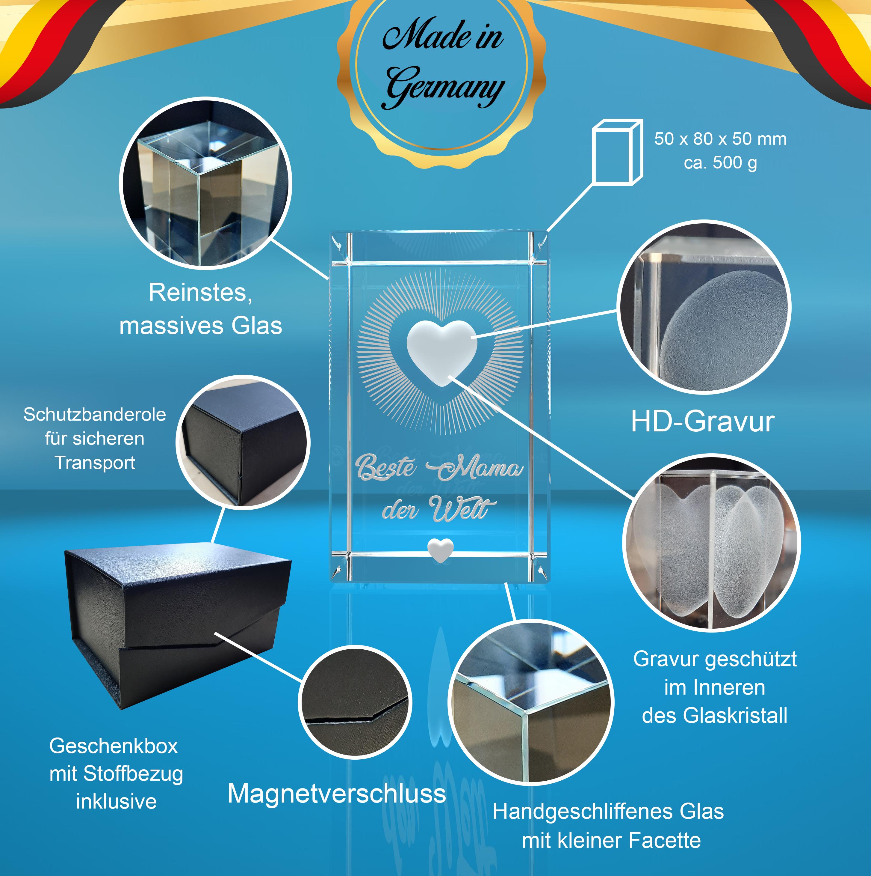 Produktinformationen "3D Glas Kristall I Beste Mama der Welt I Herz I Geschenk zum Muttertag Geburtstag Weihnachten I Muttertagsgeschenk I Beste Mutter Mutti I Best Mom I Geschenk Für Mama Mütter I Mami I Schwiegermama I Danke"