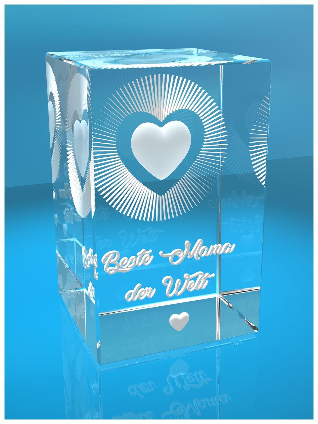 3D Glas Kristall I Beste Mama der Welt I Herz I Geschenk zum Muttertag Geburtstag Weihnachten I Muttertagsgeschenk I Beste Mutter Mutti I Best Mom I Geschenk Für Mama Mütter I Mami I Schwiegermama I Danke
