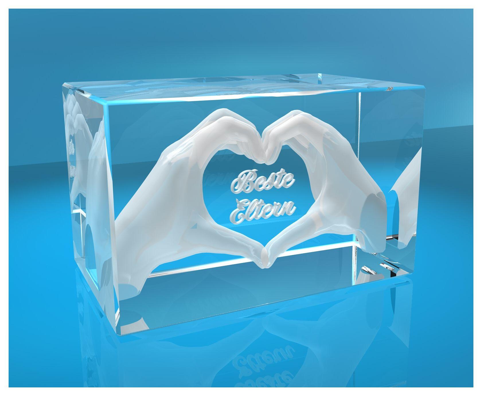 Produktinformationen "3D Glasquader I Herz aus Händen mit Gravur I Text: Beste Eltern"