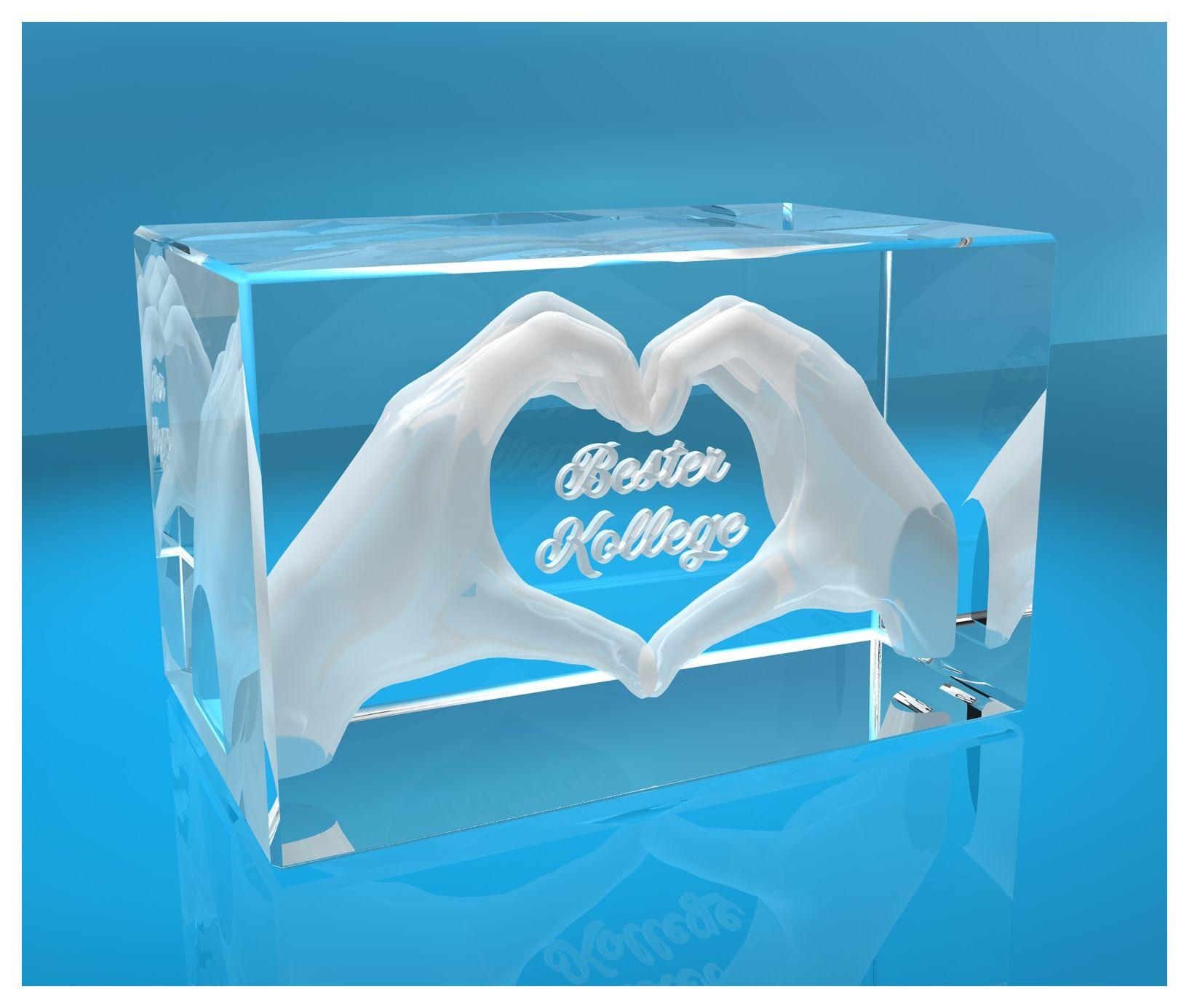 Produktinformationen "3D Glasquader I Herz aus Händen mit Gravur I Text: Bester Kollege"