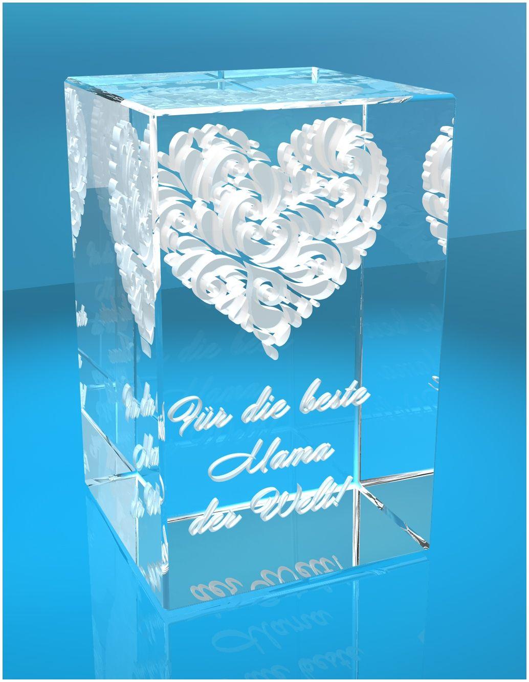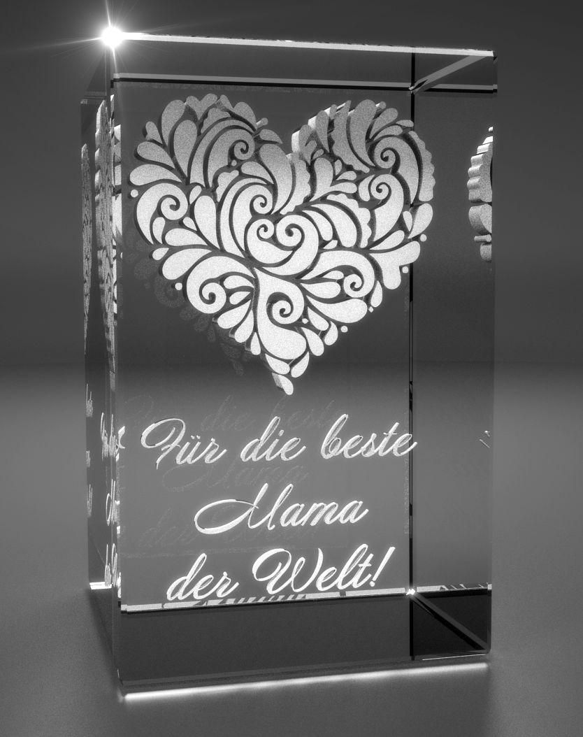 Produktinformationen "3D Glasquader I Motiv: Verziertes Herz Beste Mama der Welt"