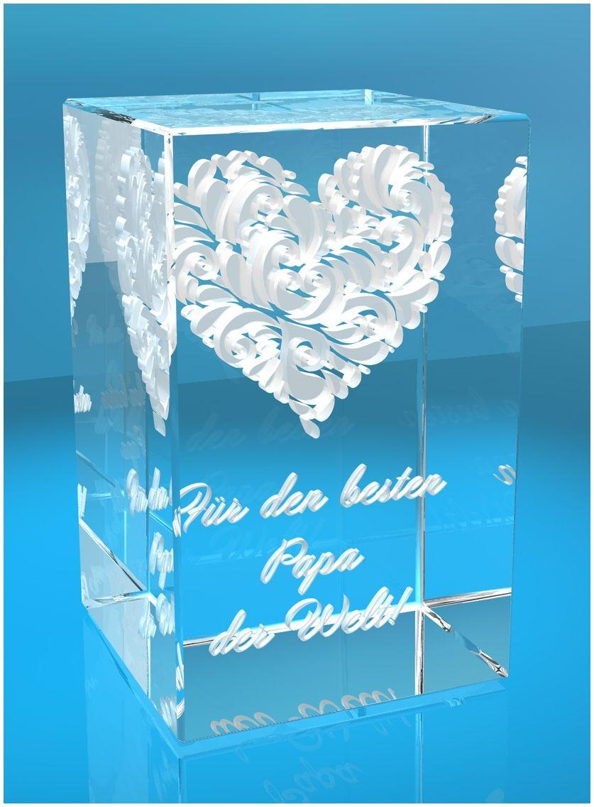 Produktinformationen "3D Glasquader I Motiv: Verziertes Herz Bester Papa der Welt"