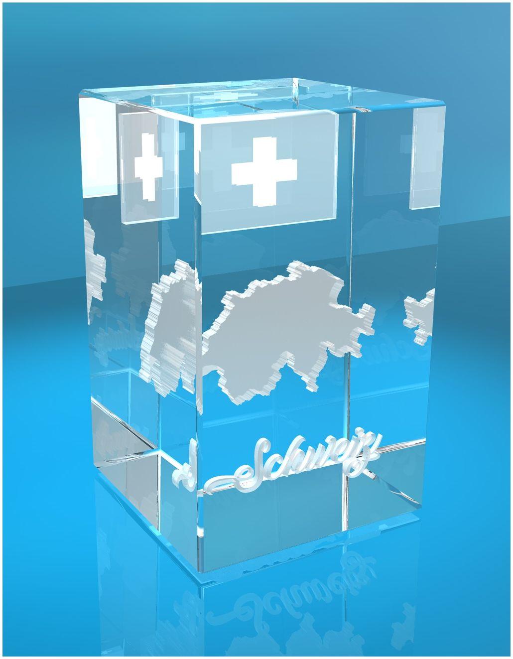 Der 3D Glasquader "Schweiz" ist ein elegantes und hochwertiges Dekorationsstück, das die Schönheit und den Charme der Schweizer Landschaft in einem kompakten Format einfängt. Hergestellt aus optisch reinem Glas, bietet dieser Quader eine kristallklare Sicht auf das kunstvoll eingearbeitete 3D-Motiv, das die Erhabenheit der Schweizer Berge und Täler detailgetreu darstellt. Jedes Detail dieser meisterhaften Gravur wird durch laserpräzise Technik in das Innere des Quaders eingearbeitet, was eine faszinierende räumliche Tiefe erzeugt. Der Glasquader eignet sich perfekt als Geschenk für Liebhaber der Schweiz oder als stilvolles Accessoire für das eigene Zuhause oder Büro. Seine kompakte Größe macht ihn zu einem vielseitigen und anpassungsfähigen Dekorationsgegenstand, der sich leicht in verschiedene Umgebungen integrieren lässt. Das klare Design und die hochwertige Verarbeitung garantieren eine langlebige Freude an diesem außergewöhnlichen Stück, das die Liebe zur Natur und Kultur der Schweiz perfekt widerspiegelt.