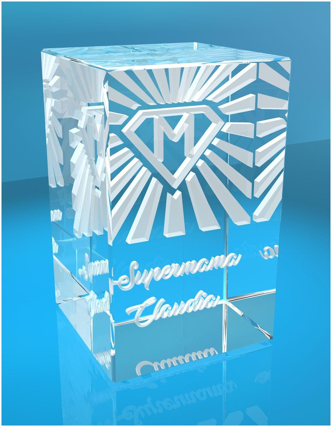 Produktinformationen "3D Glasquader I Supermama mit Deinem Namen graviert"