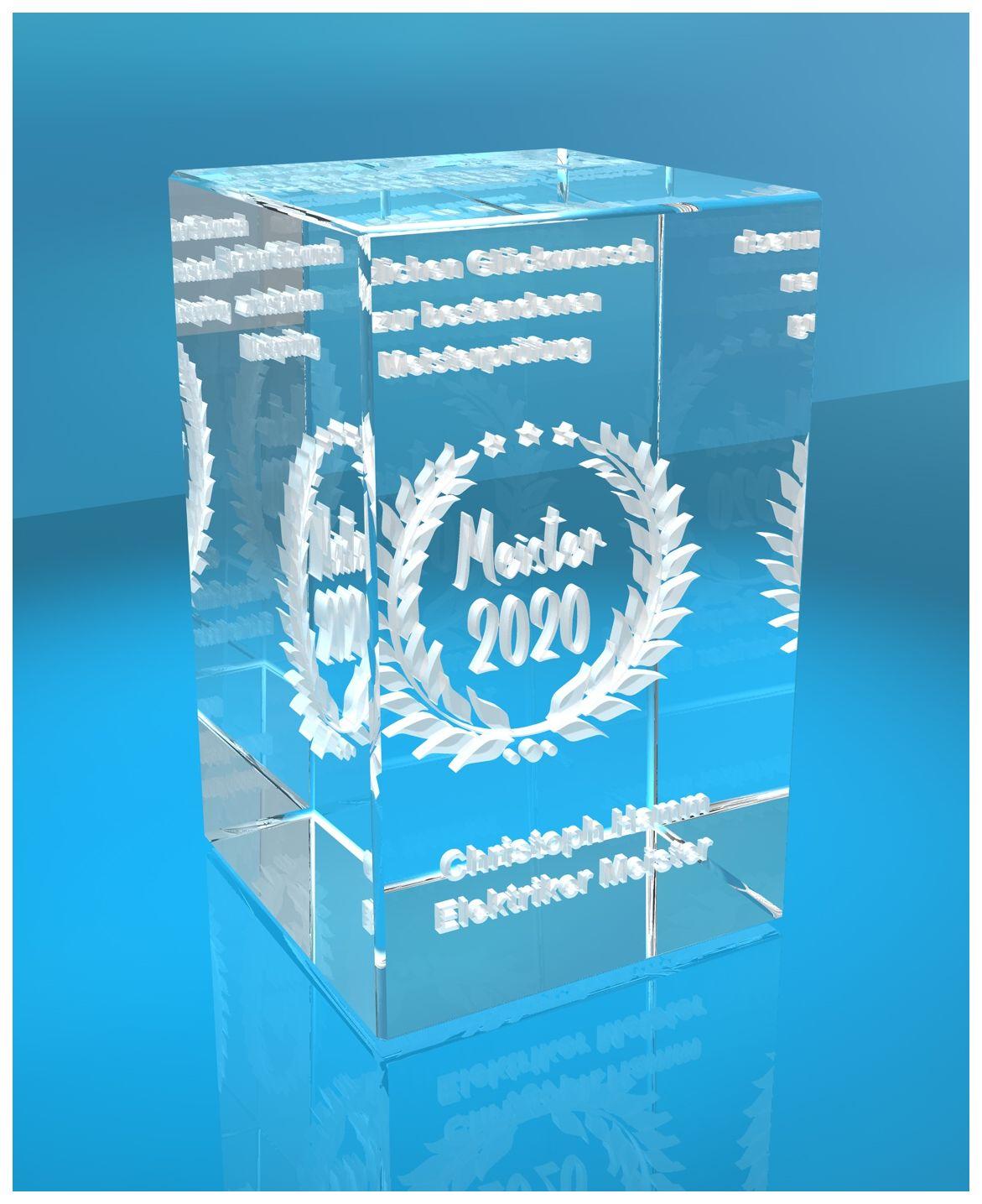 Produktinformationen "3D Glasquader Meister 2020 Glückwunsch mit Wunschtext Geschenk zur Meisterprüfung"