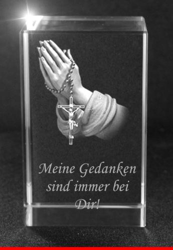 Produktinformationen "3D Glasquader Motiv: Betende Hände Meine Gedanken sind immer bei Dir"