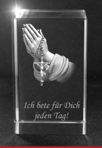 Produktinformationen "3D Glasquader Motiv: Betende Hände Text: Ich bete für Dich jeden Tag!"