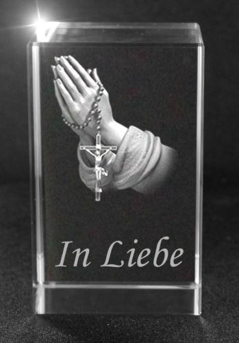 Produktinformationen "3D Glasquader Motiv: Betende Hände Text: in Liebe!"