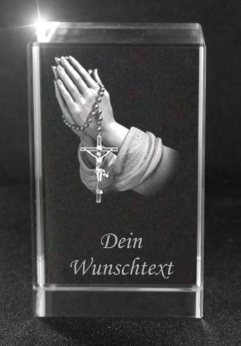 Produktinformationen "3D Glasquader Motiv: Betende Hände + Wunschtext"