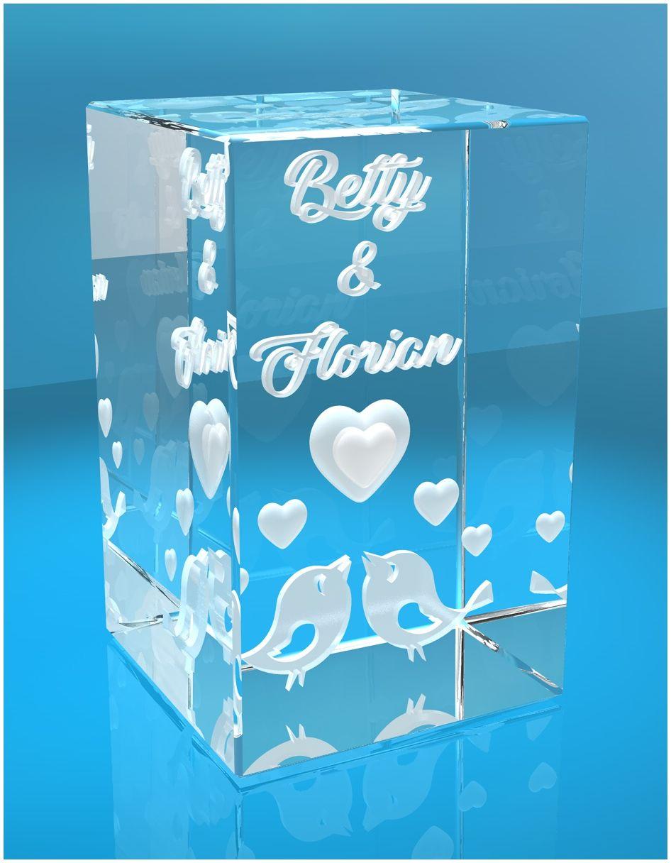 Produktinformationen "3D Glasquader Motiv: Liebesvögel I Gravur mit Deinen Namen"