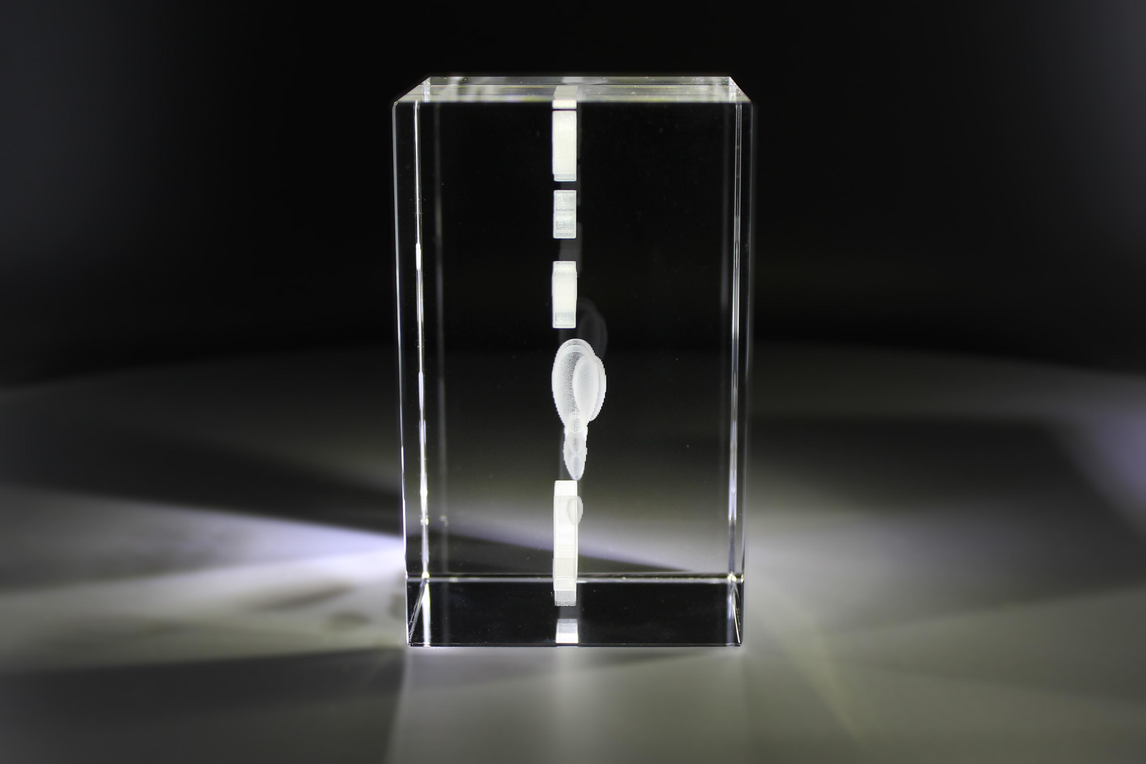 Wir verwenden ausschließlich reines optisches Glas, welches frei von inneren Spannungen ist. Durch unseren modernen Hochleistungslaser und unserer HD-GRAVUR erhaltern Sie ein hervorragendes detailiertes Gravurergebnis. Dieser Glaskristall wird mit mindestens 400000 kleinen Bildpunkten graviert, welche eine sehr detailierte Gravur ermöglichen.