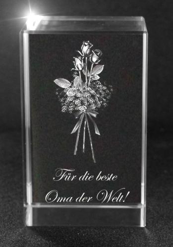 Produktinformationen "3D Glasquader Motiv: Rosenstrauss Beste Oma der Welt"