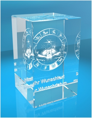 Produktinformationen "3D Glasquader Motiv: Sternzeichen Krebs + Wunschtext"