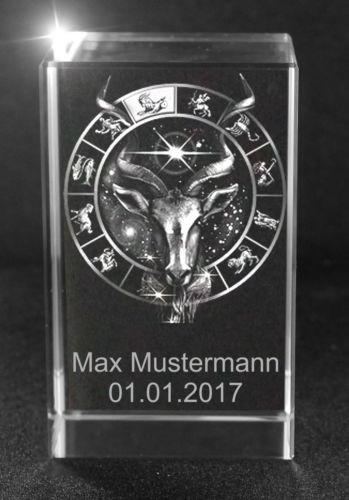 3D Glasquader Motiv: Sternzeichen Steinbock + Wunschtext