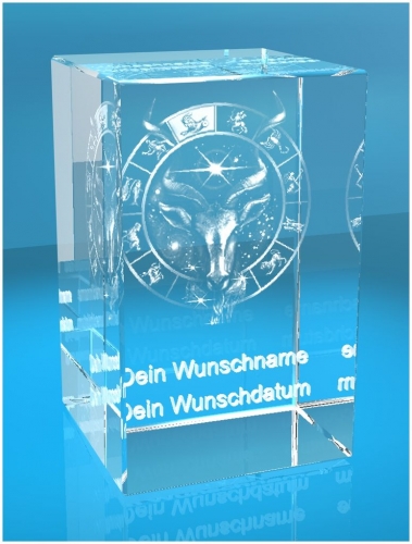 Produktinformationen "3D Glasquader Motiv: Sternzeichen Steinbock + Wunschtext"