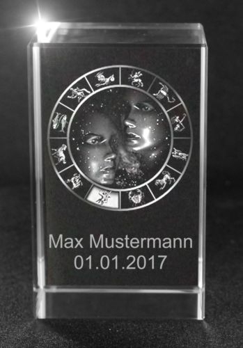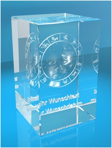 Produktinformationen "3D Glasquader Motiv: Sternzeichen Zwillinge + Wunschtext"