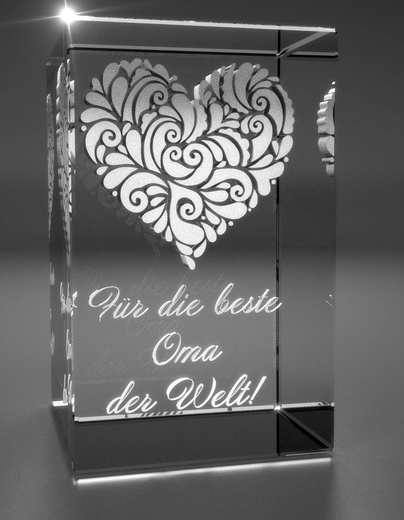 Produktinformationen "3D Glasquader Motiv: Verziertes Herz Beste Oma der Welt!"
