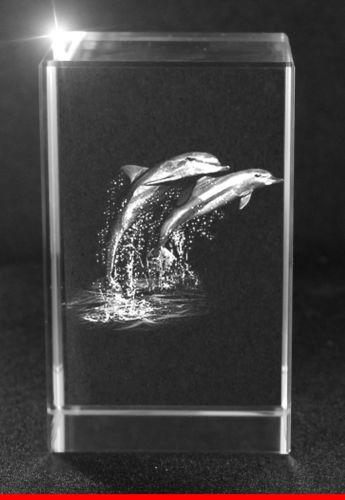 Produktinformationen "3D Glasquader Motiv: zwei Delfine / Delphine"
