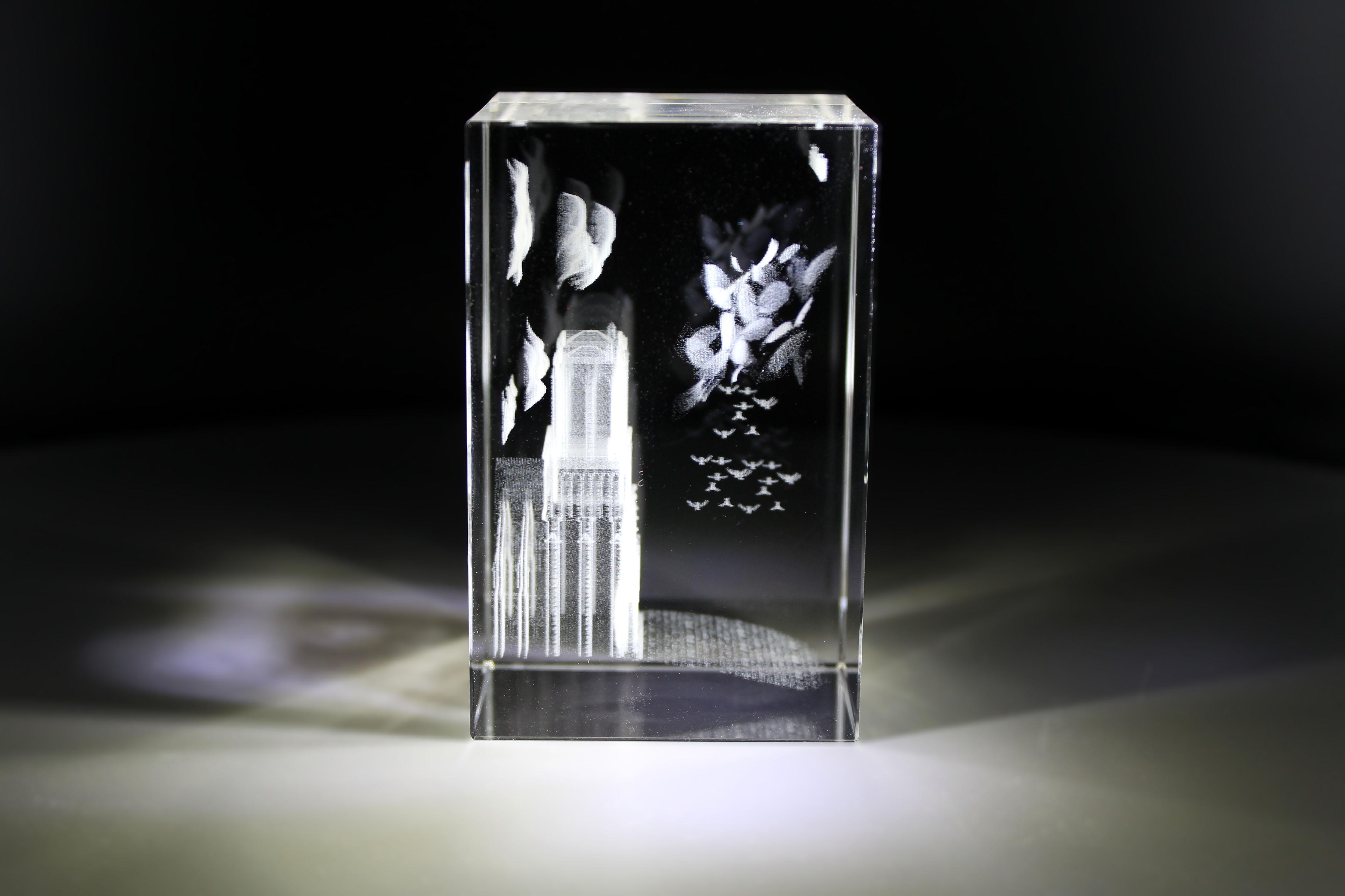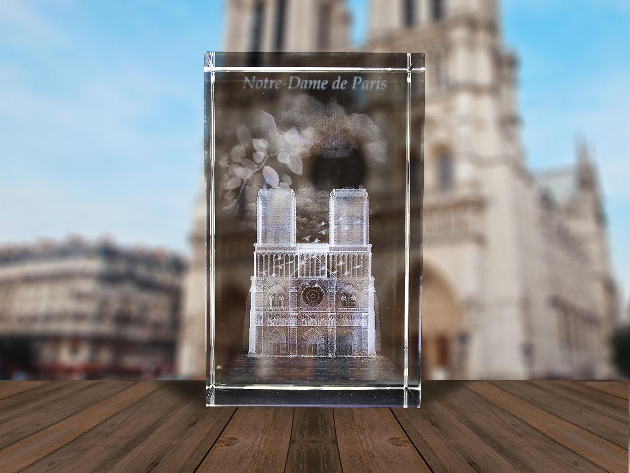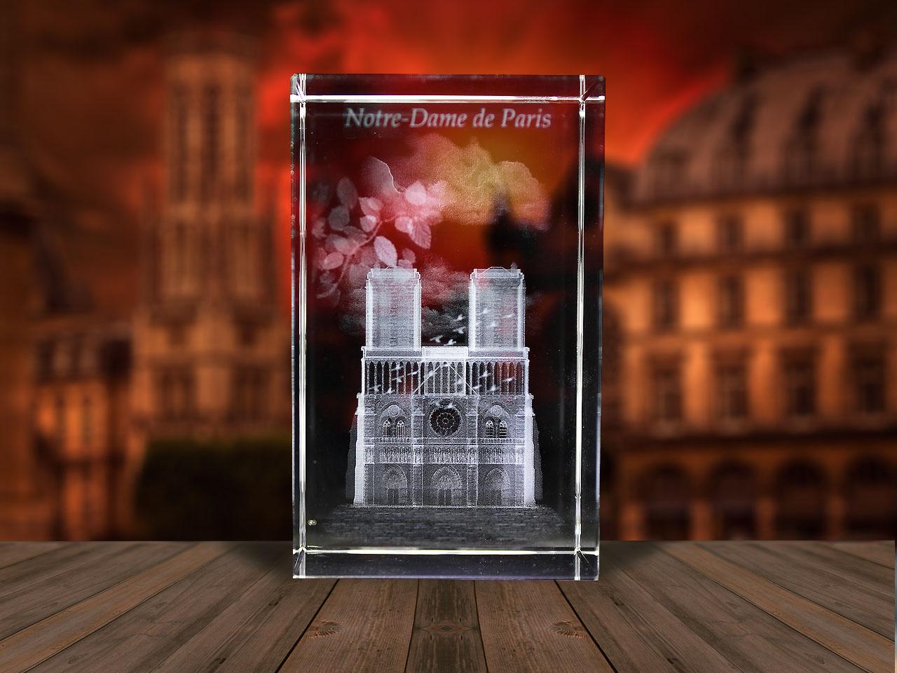 - Tolles 3D Foto von Notre Dame de Paris innerhalb des Glaskristalles in HD-Qualität graviert.