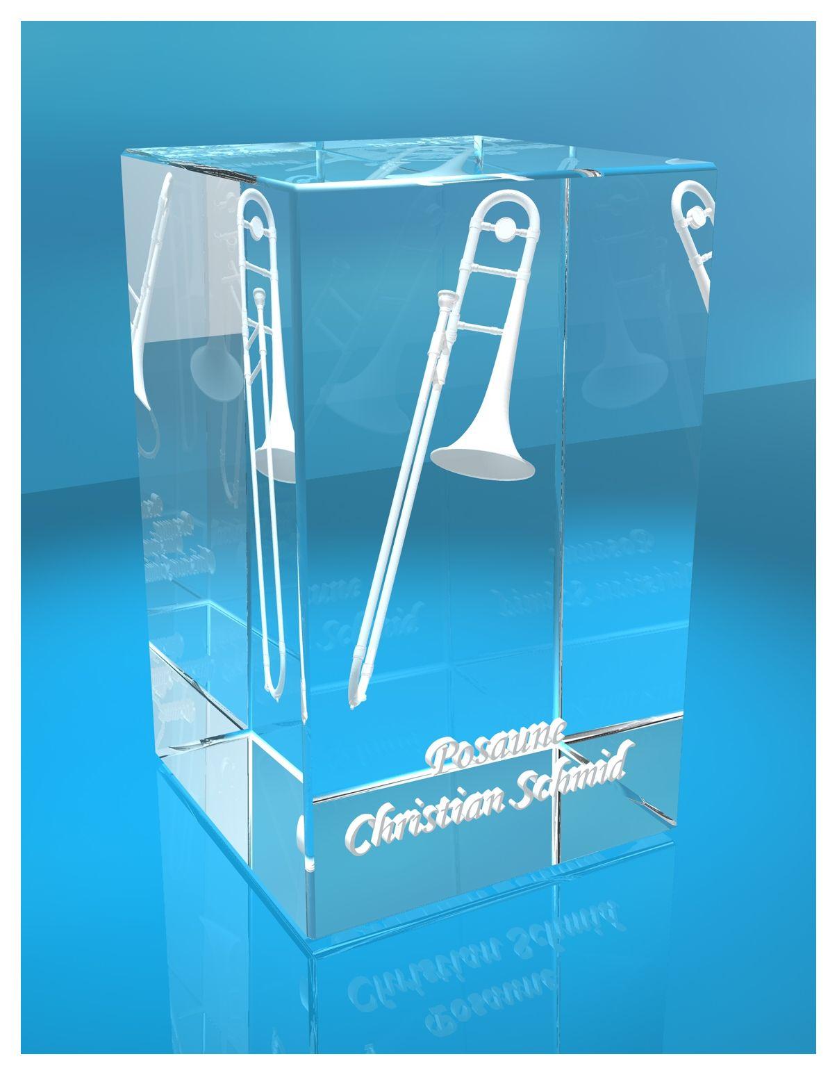 Eigenschaften "3D Glasquader |Posaune mit Wunschnamen |Blasinstrument |Geschenk für Posaunespieler Musiker Orchester"