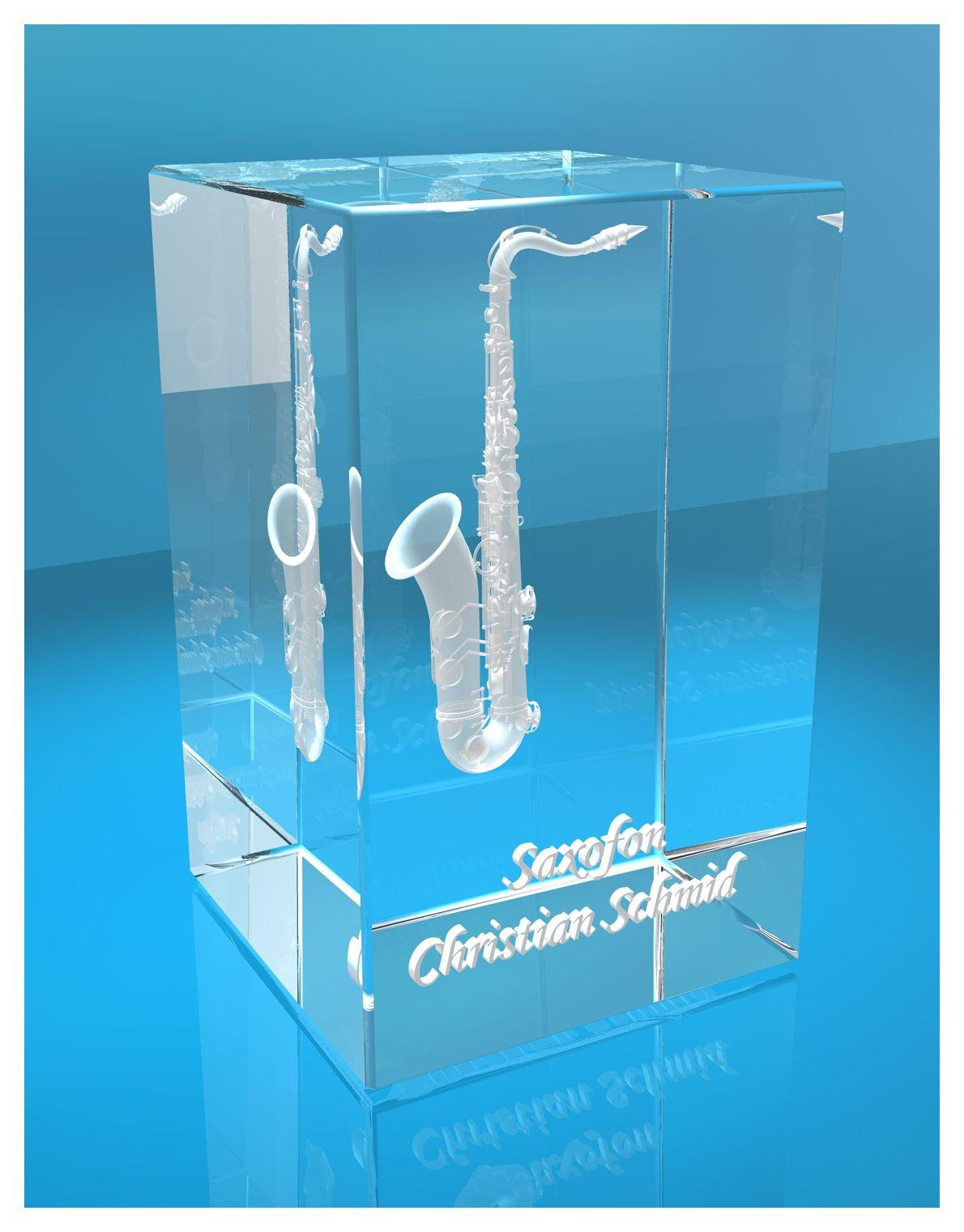 3D Glasquader |Saxofon mit Wunschnamen |Saxophon |Geschenk für Saxophonist Musiker Saxofonist