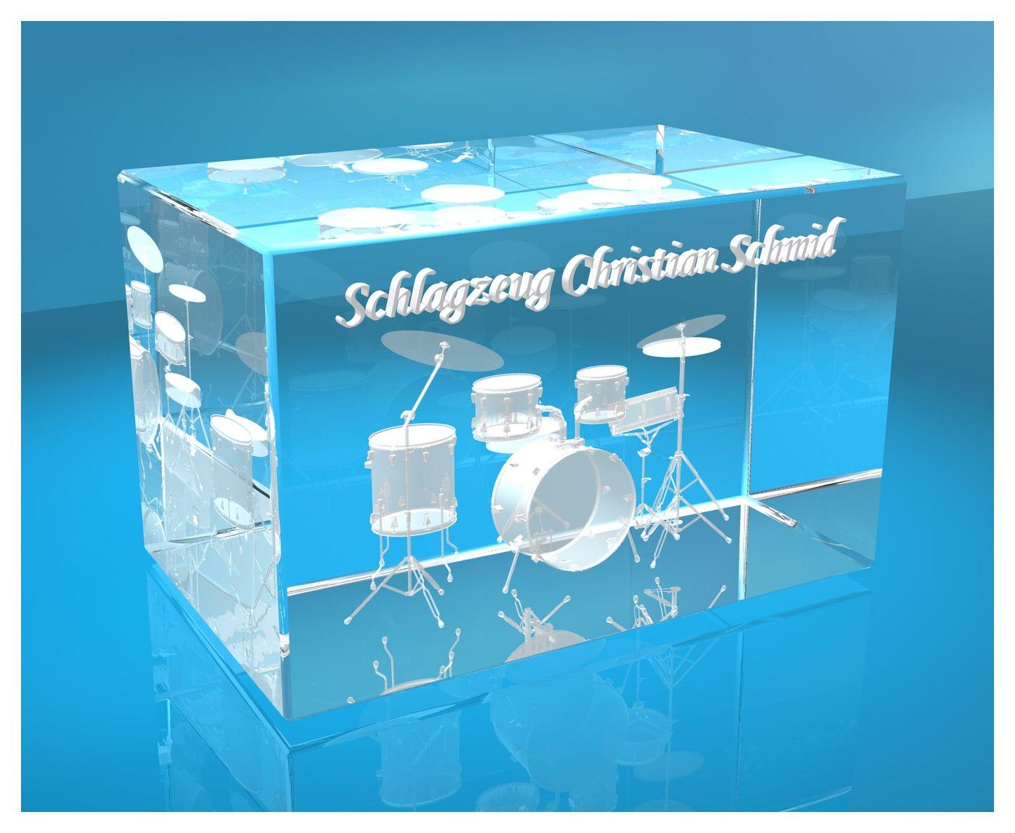 Produktinformationen "3D Glasquader |Schlagzeug mit Wunschnamen |Drumset| Geschenk für Schlagzeuger Drummer Musiker"