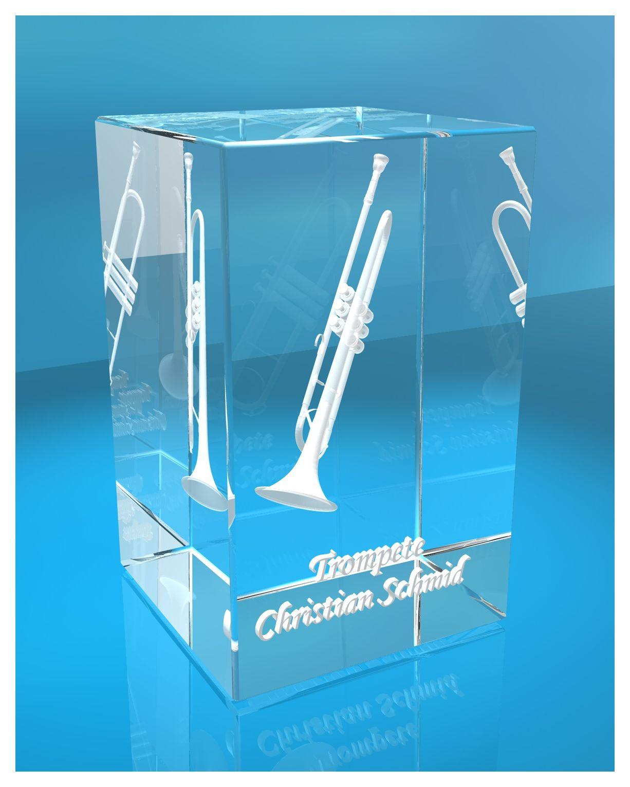 3D Glasquader |Trompete mit Wunschnamen |Blasinstrument |Geschenk für Trompetenspieler Musiker Orchester