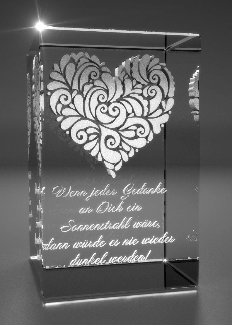 Produktinformationen "3D Glasquader verziertes Herz Wenn jeder Gedanke an Dich..."