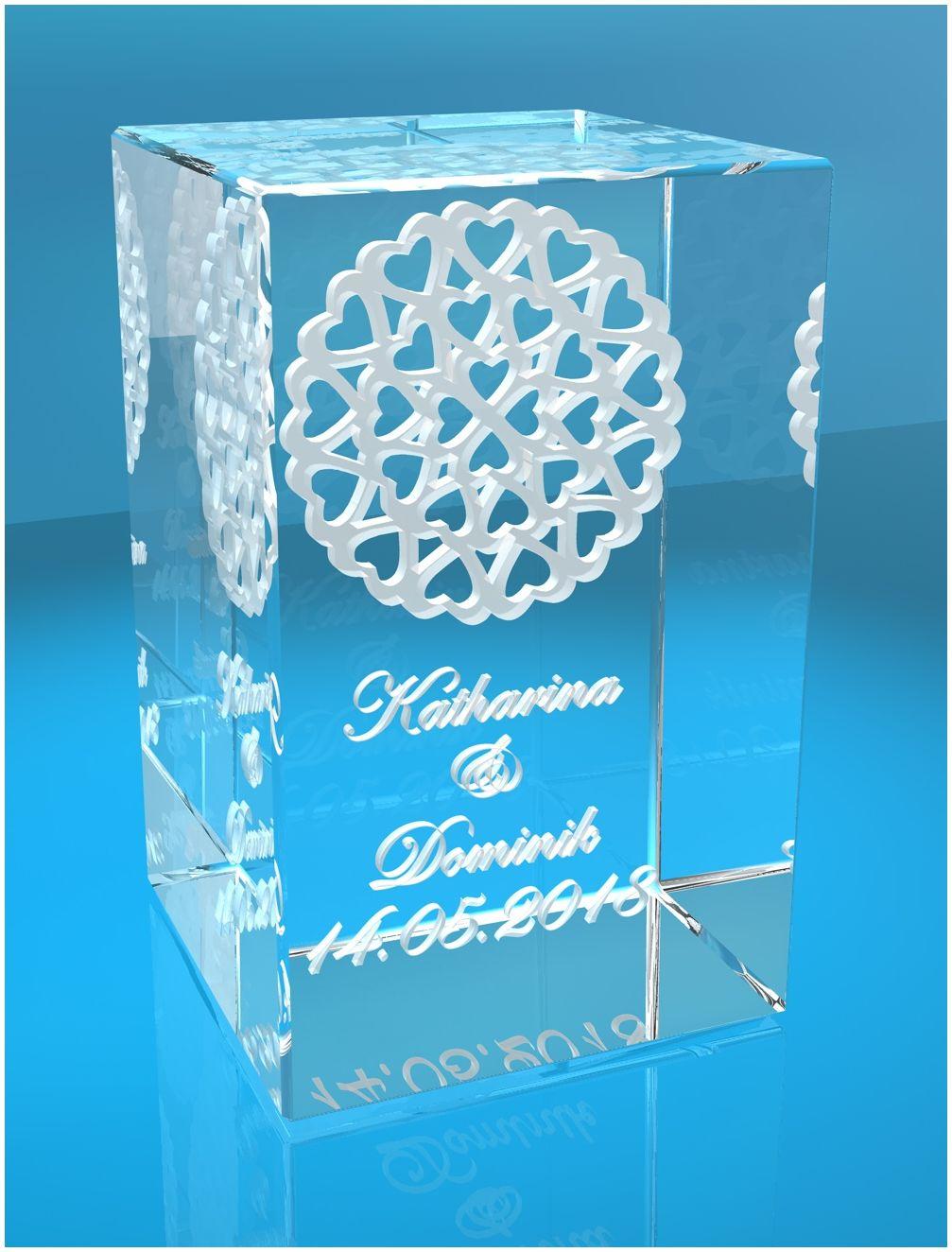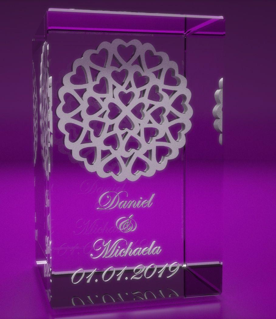 Produktinformationen "3D Glasquader viele Herzen im Kreis Name + Datum"