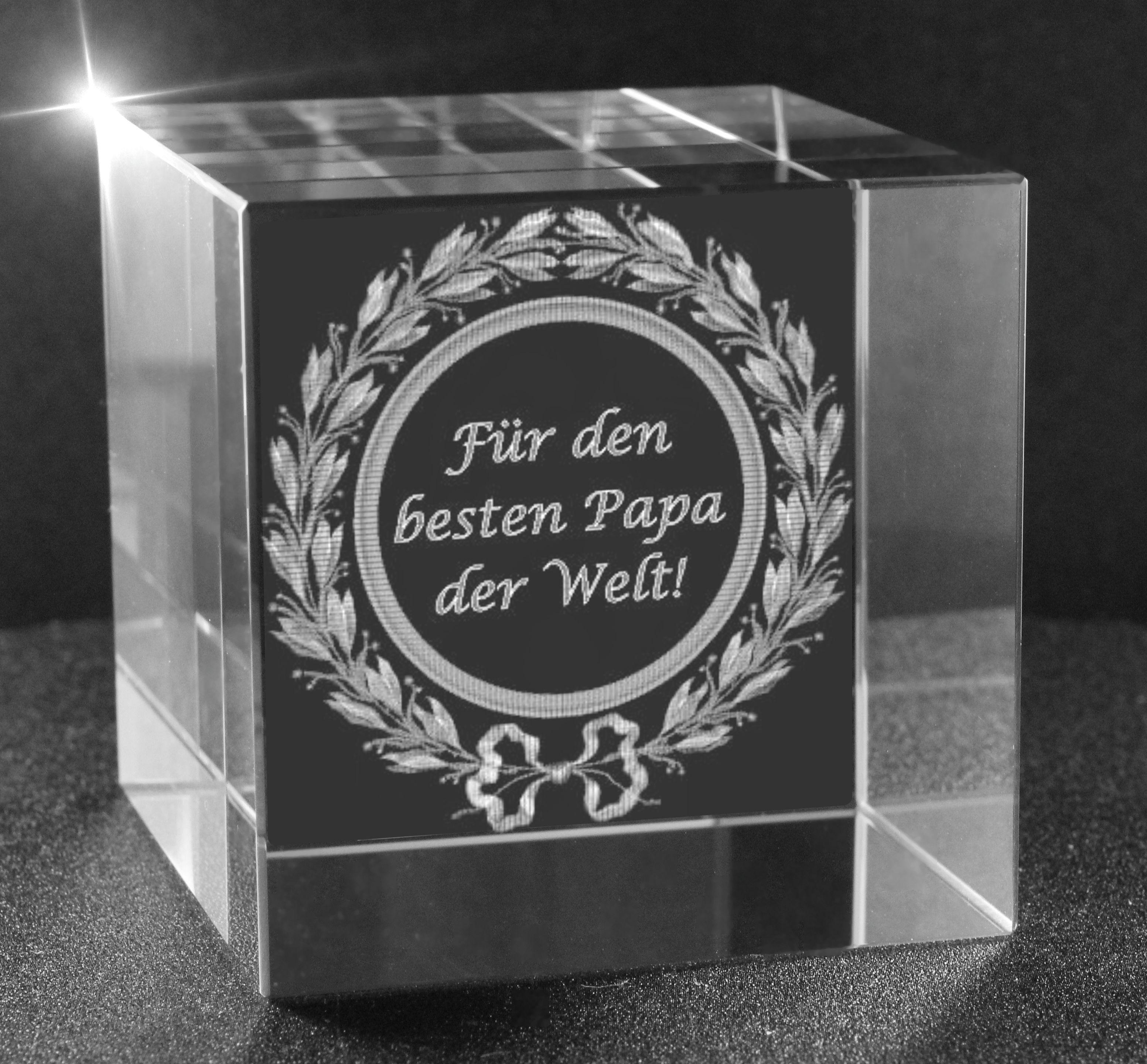 Produktinformationen "3D Glaswürfel Motiv: Lorbeerkranz Für den besten Papa der Welt!"