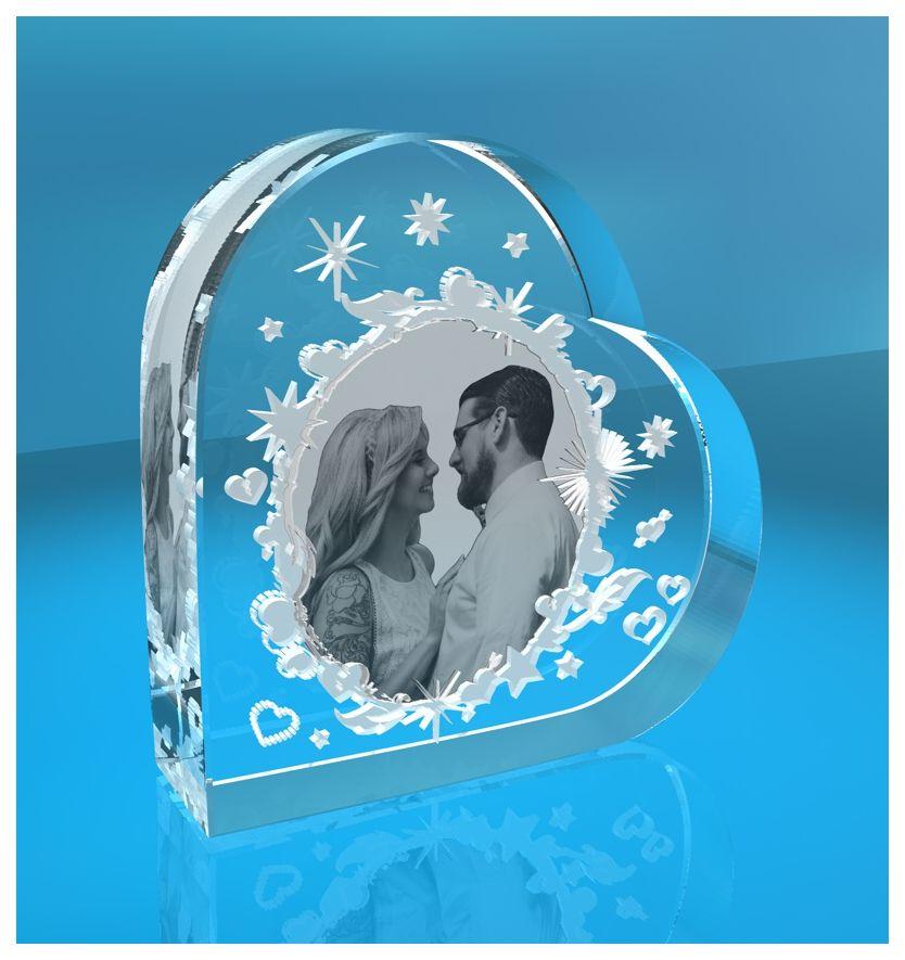 Das Herz hat eine Größe von ca. 80 x 80 x 19 mm und besteht aus hochwertigem, optisch reinem Kristallglas – ganz ohne Einschlüsse. Dein Wunschfoto wird im Inneren des Glases graviert – kein Druck, keine Farbe, nur reine Eleganz und Präzision.