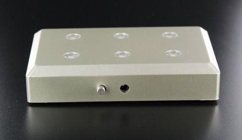 Erwerben Sie diesen hochwertigen Leuchtsockel mit 6 hellen LEDs, die den Glaskristall perfekt ausleuchten. Der Leuchtsockel ist optimal geeignet für XL (=80x50x50mm) Glaskristall Quader die im Querformat erworben wurden und wird mit Batterien betrieben.