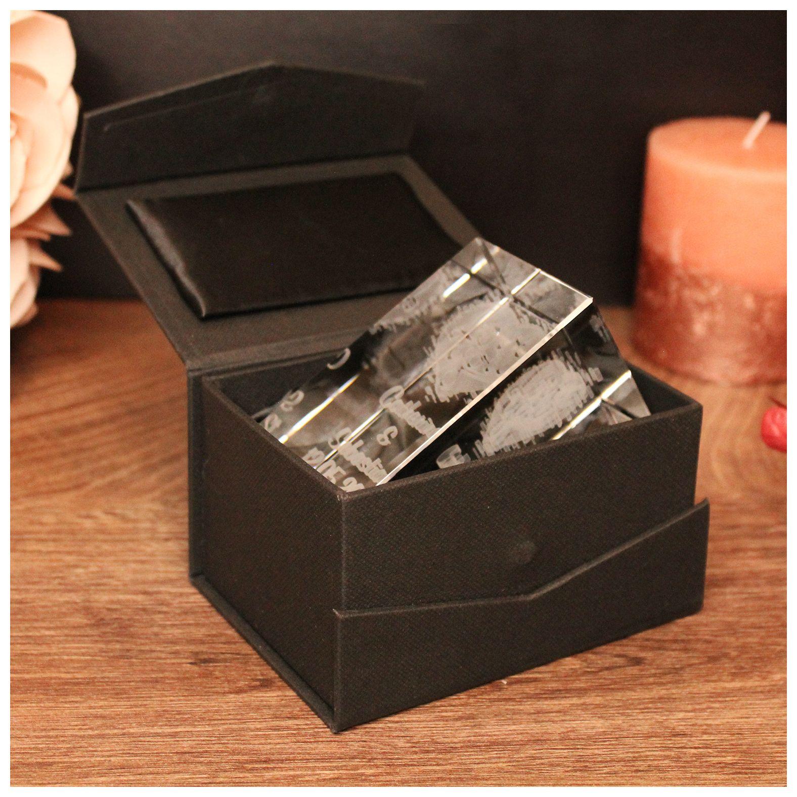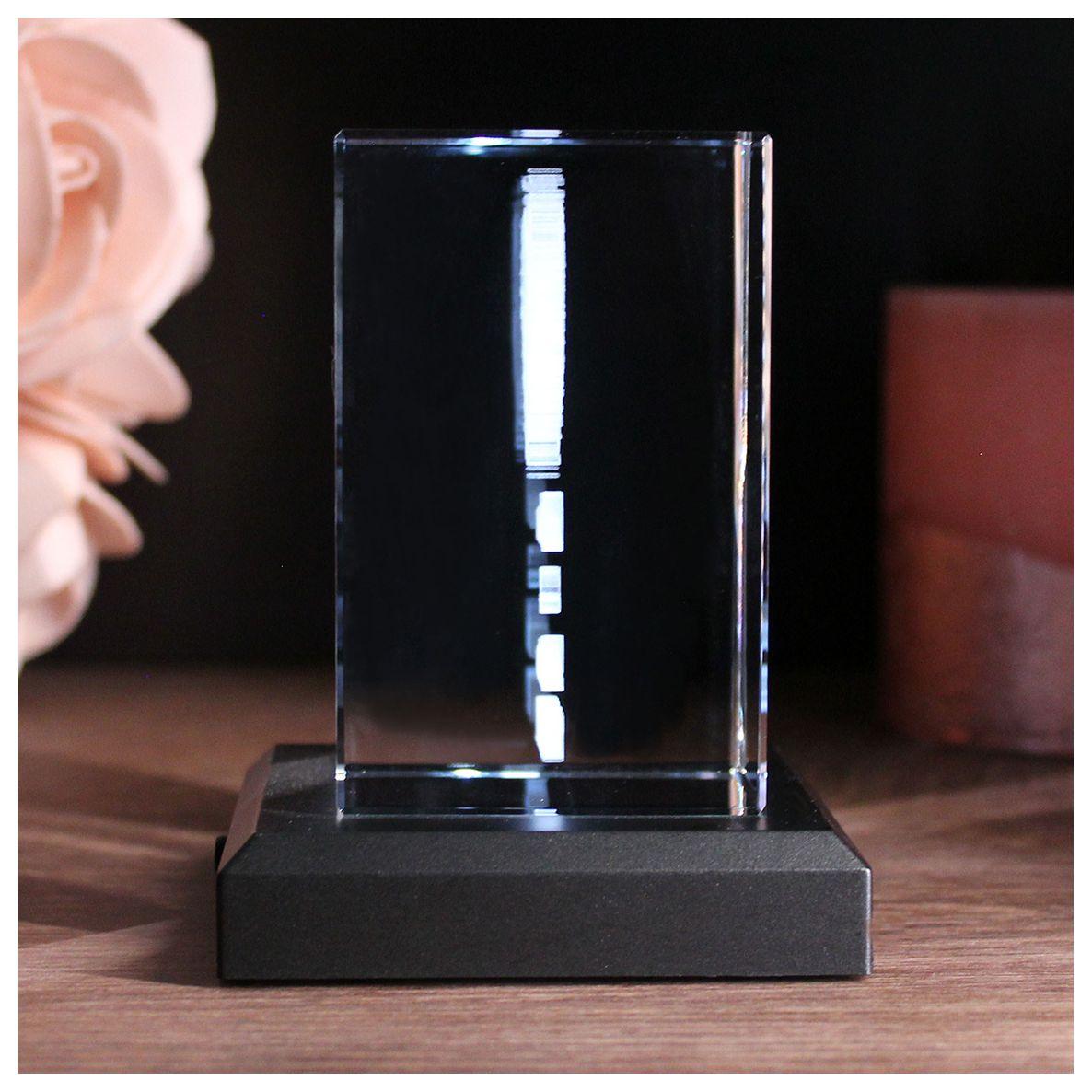 - 3D Glaskristall in den Abmessungen 80mm x 50mm x 50 mm (Höhe x Breite x Tiefe)