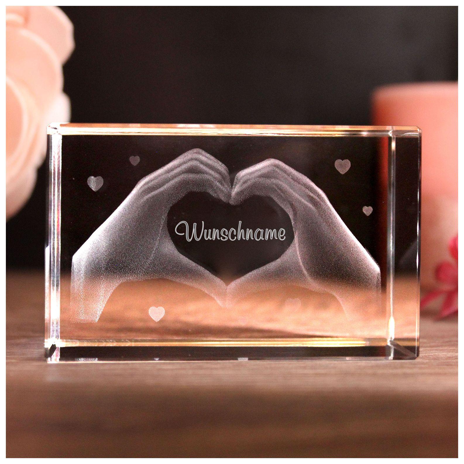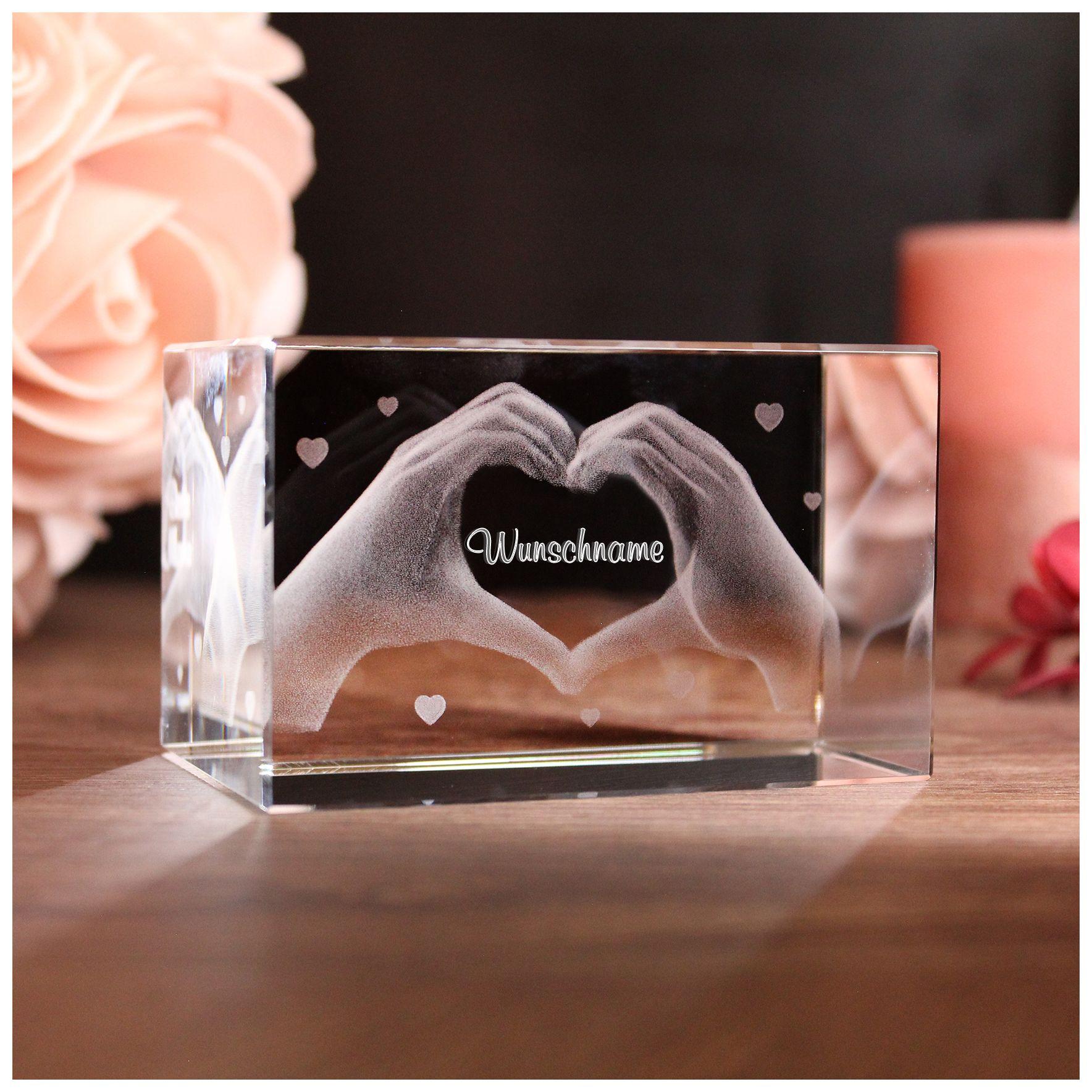 Produktinformationen "LoveGoals 3D Glaskristall | Motiv Hände | Dein Wunschname"