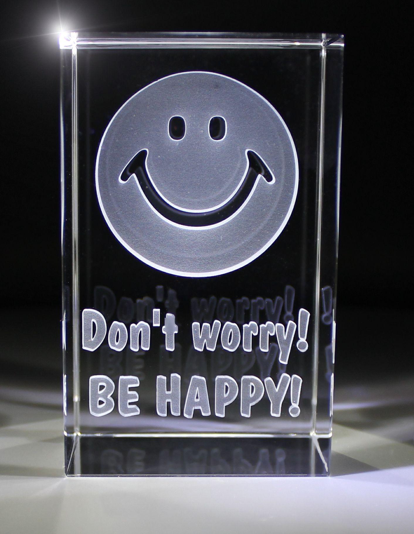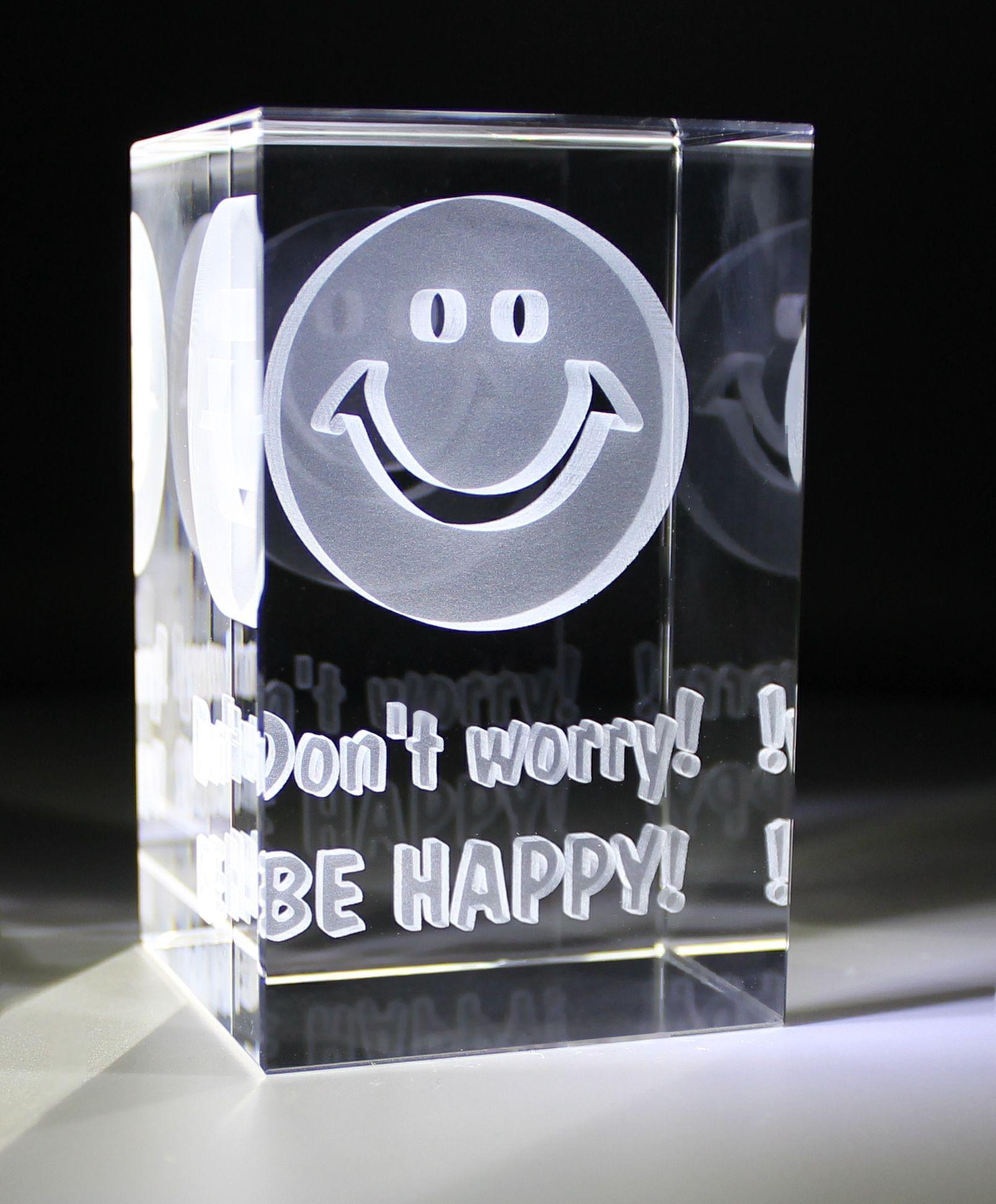 VIP-LASER 3D Glas Kristall Quader XL Smiley mit Text Dont Worry be happy