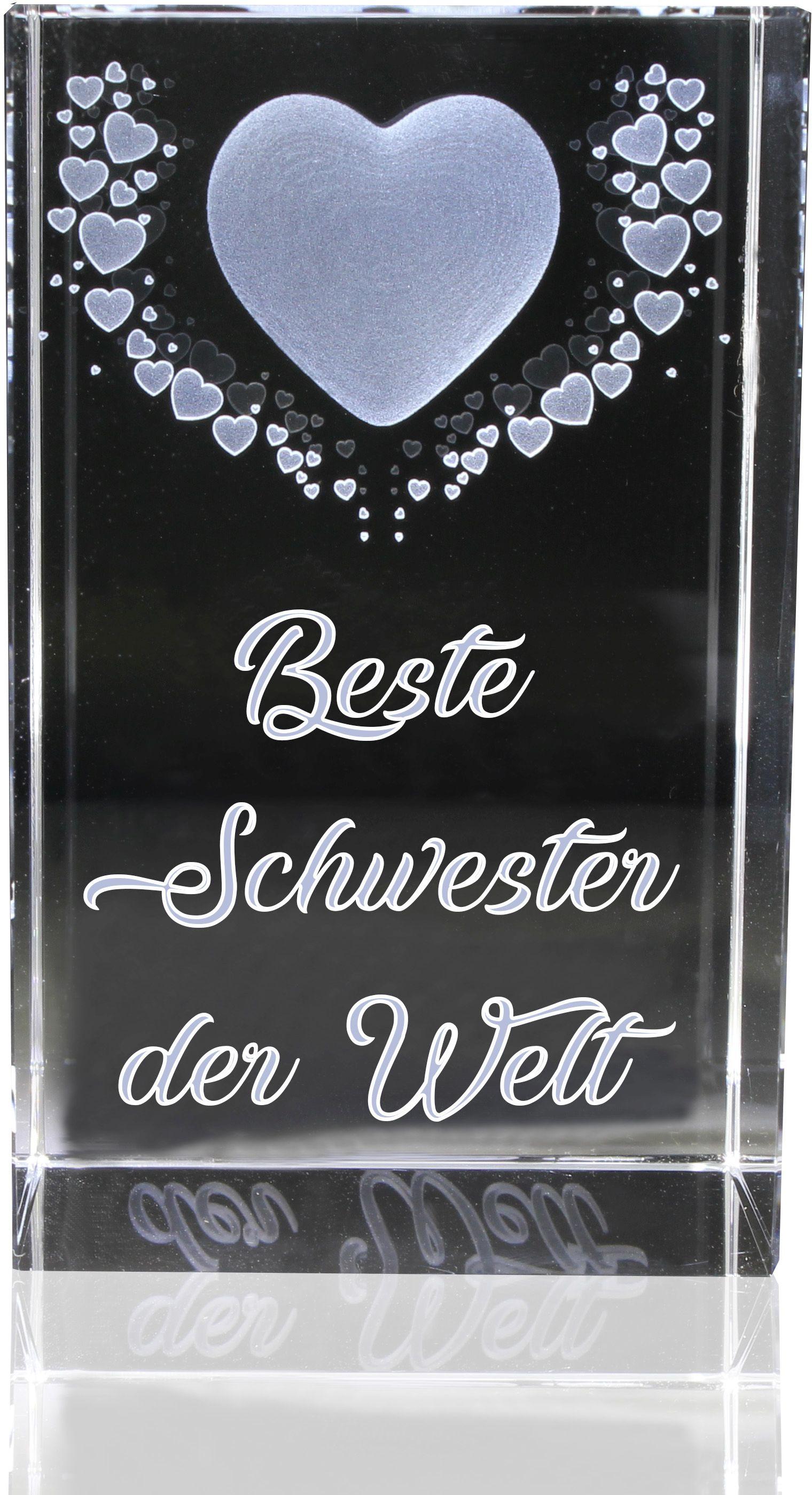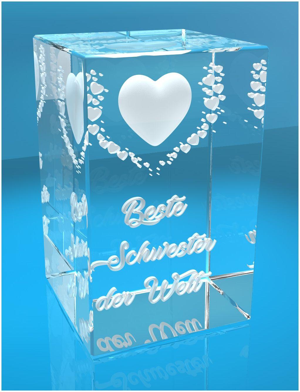 VIP-LASER 3D Kristall Motiv: Fliegende Herzen Beste Schwester der Welt