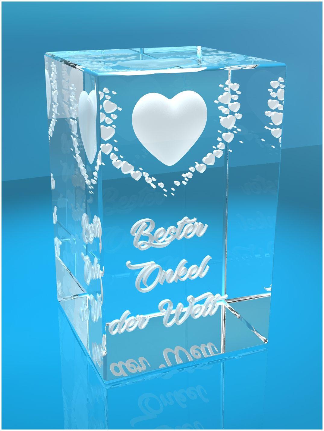 VIP-LASER 3D Kristall Motiv: Fliegende Herzen Bester Onkel der Welt