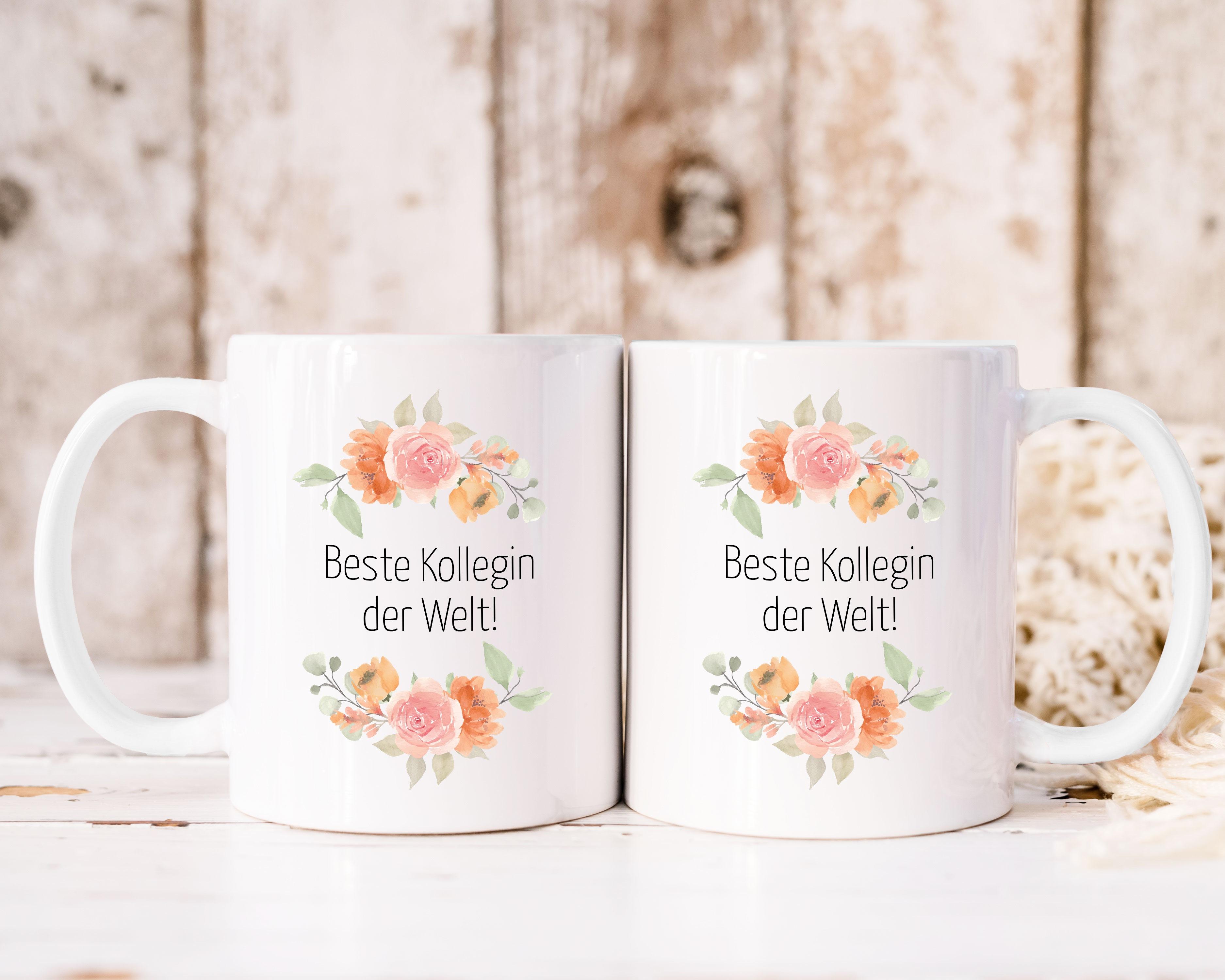 Du bist auf der Suche nach DER ganz besonderen Tasse? Dann hast du hier das perfekte Geschenk zu Weihnachten, Geburtstag oder als kleines Mitbringsel zwischendurch. Natürlich ist sie aber auch der perfekte Alltagsbegleiter für dich selbst! Egal ob auf dem Frühstückstisch oder dem Schreibtisch bei der Arbeit - hier hast du einen echten Hingucker. Mit einem schönen Blumenmotiv kommt der schöne Spruch "Beste Kollegin der Welt" einher.