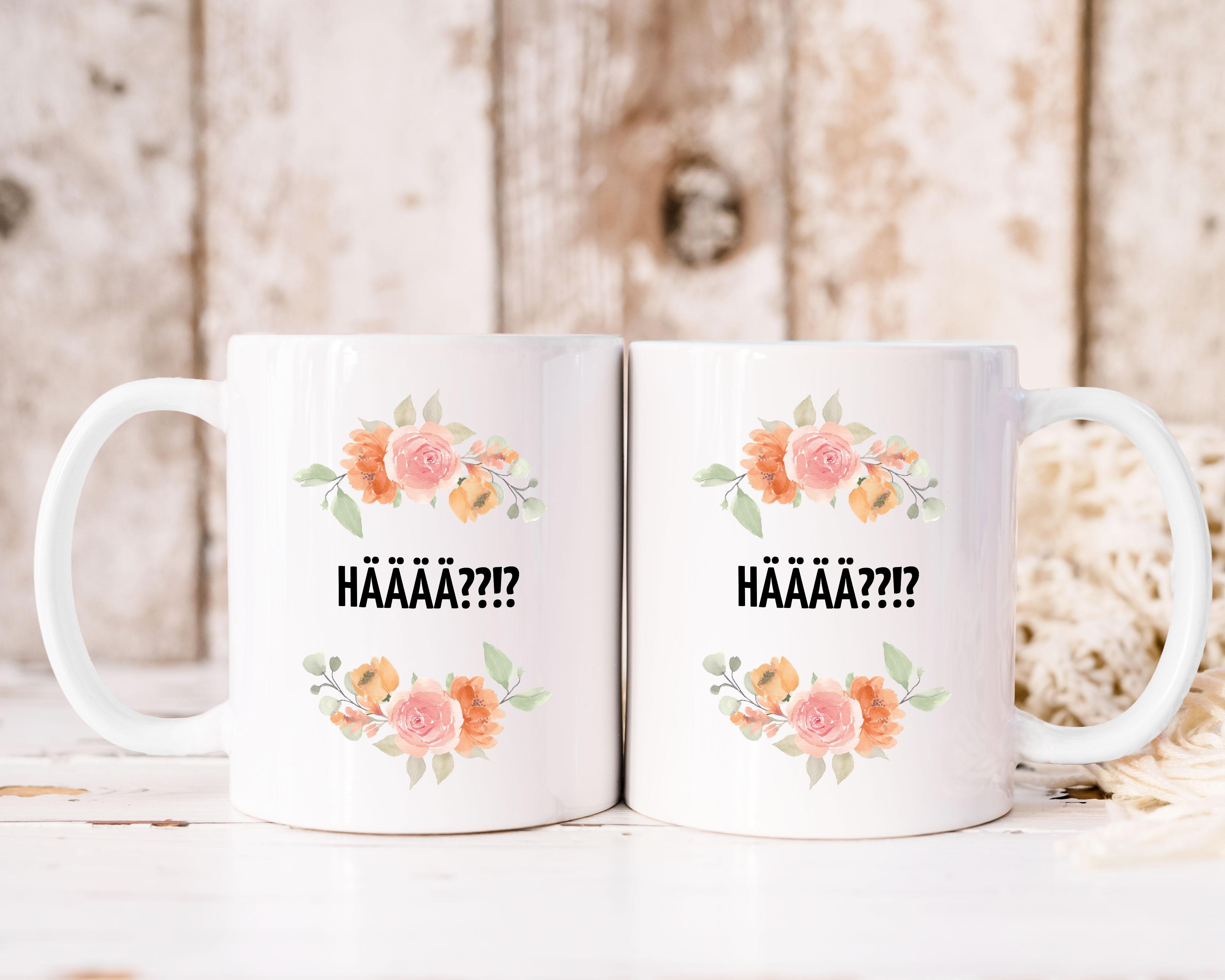 Du bist auf der Suche nach DER ganz besonderen Tasse? Dann hast du hier das perfekte Geschenk zu Weihnachten, Geburtstag oder als kleines Mitbringsel zwischendurch. Natürlich ist sie aber auch der perfekte Alltagsbegleiter für dich selbst! Egal ob auf dem Frühstückstisch oder dem Schreibtisch bei der Arbeit - hier hast du einen echten Hingucker. Mit einem schönen Blumenmotiv kommt der lustige Spruch "HÄÄÄÄÄ?" einher.