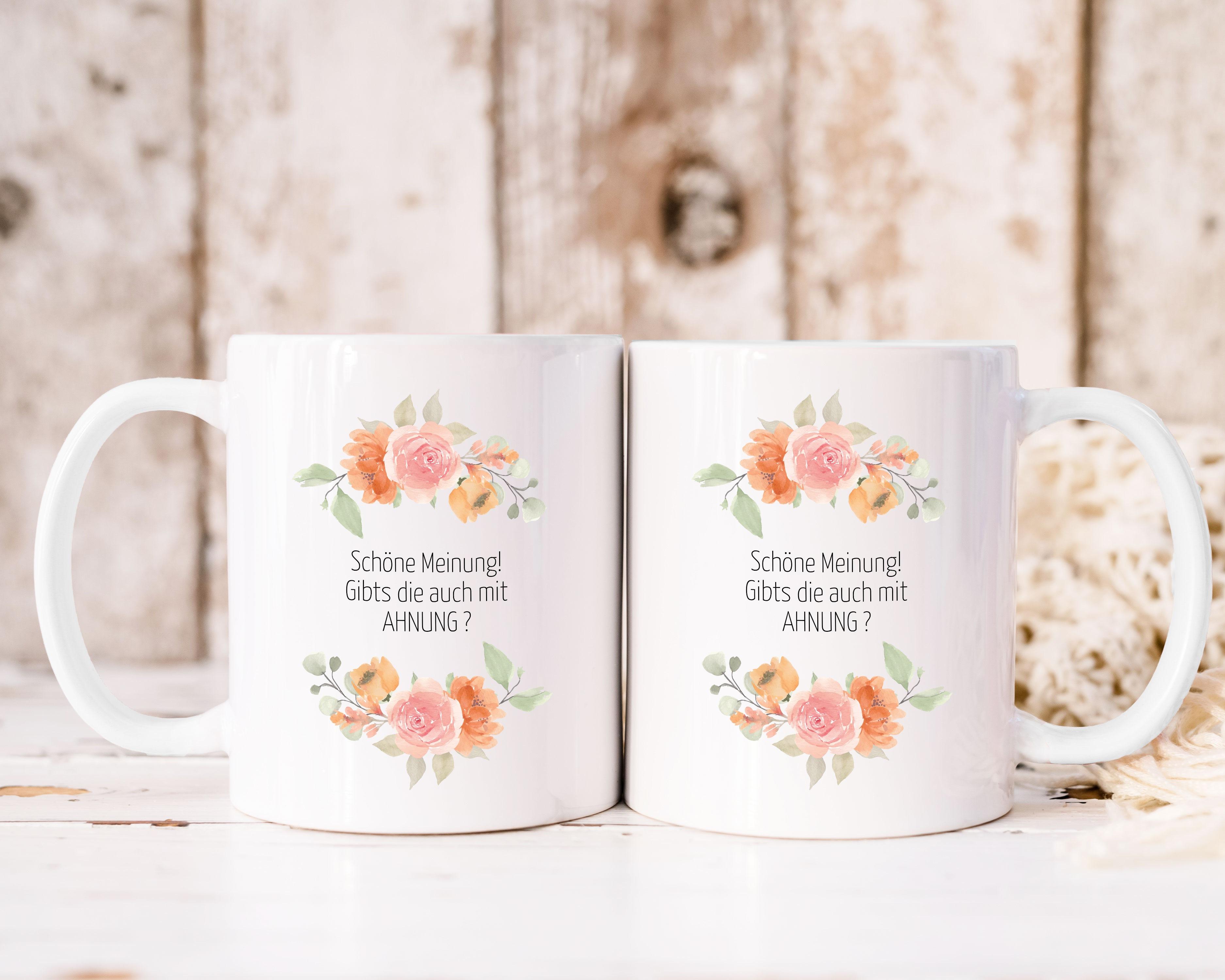 VIP-LASER Kaffee-Tasse Blütendekor mit witzigem Spruch | Schöne Meinung! Gibts die auch mit AHNUNG'